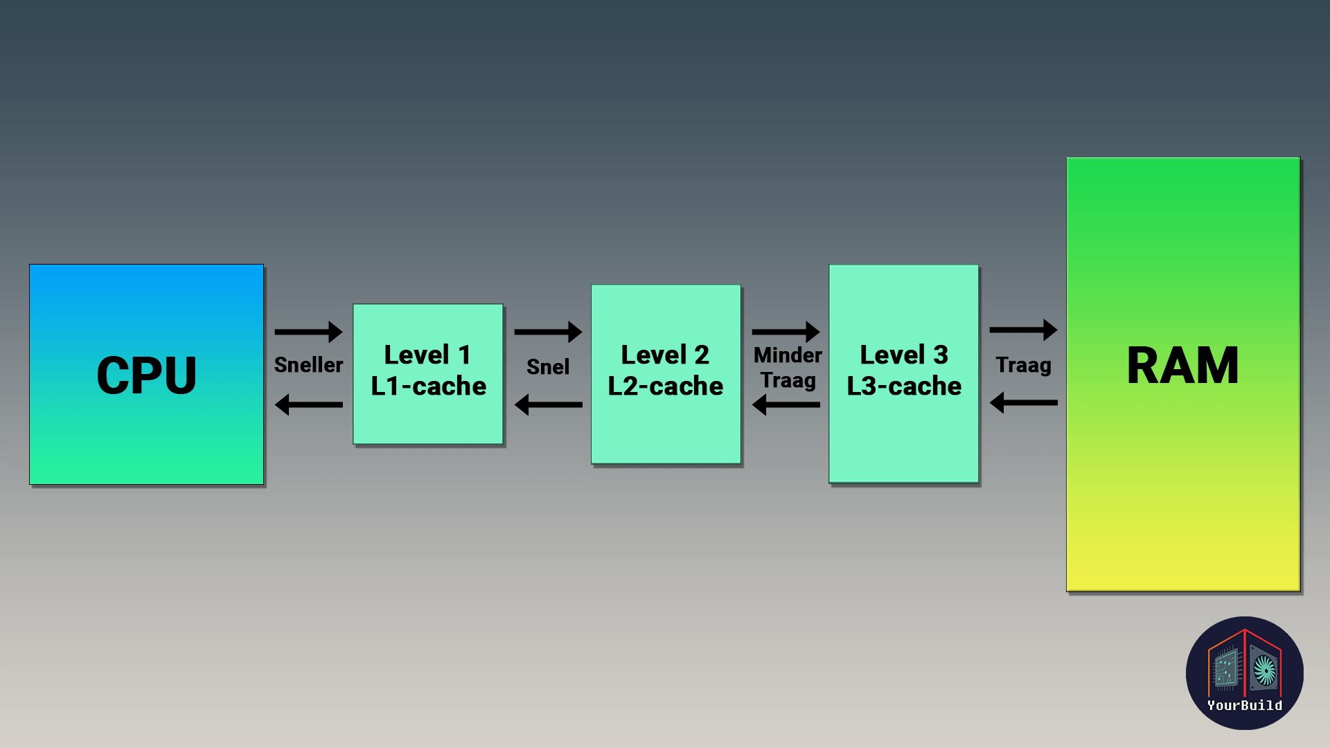 Je kunt CPU-cache vergelijken met een boekenplank naast je bureau. De boeken die je momenteel leest, staan op de plank, zodat je ze snel kunt pakken wanneer je ze nodig hebt. Als je elke keer naar de bibliotheek moest lopen wanneer je iets wilde opzoeken, zou het veel langer duren.